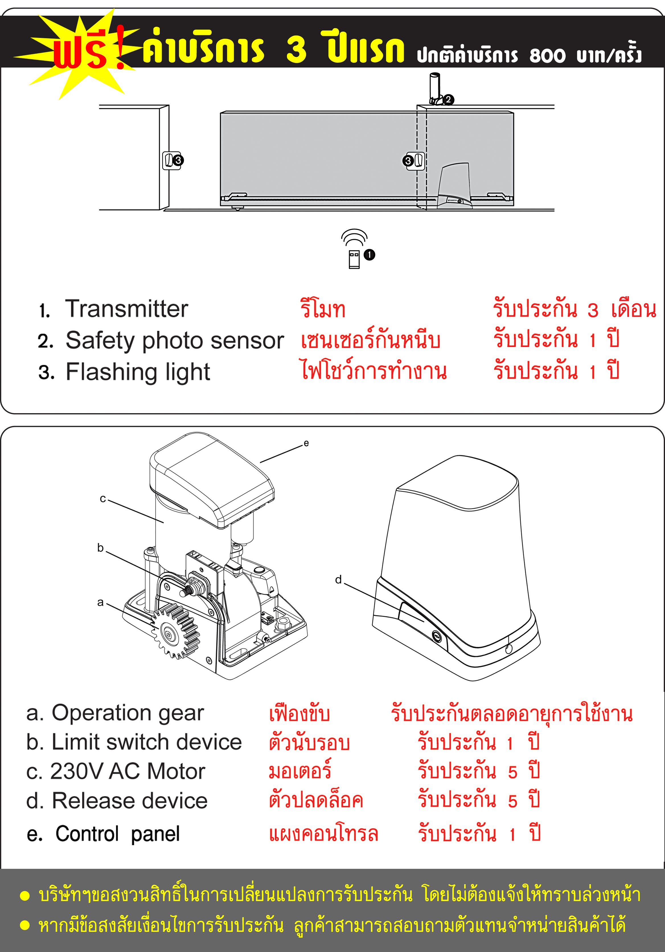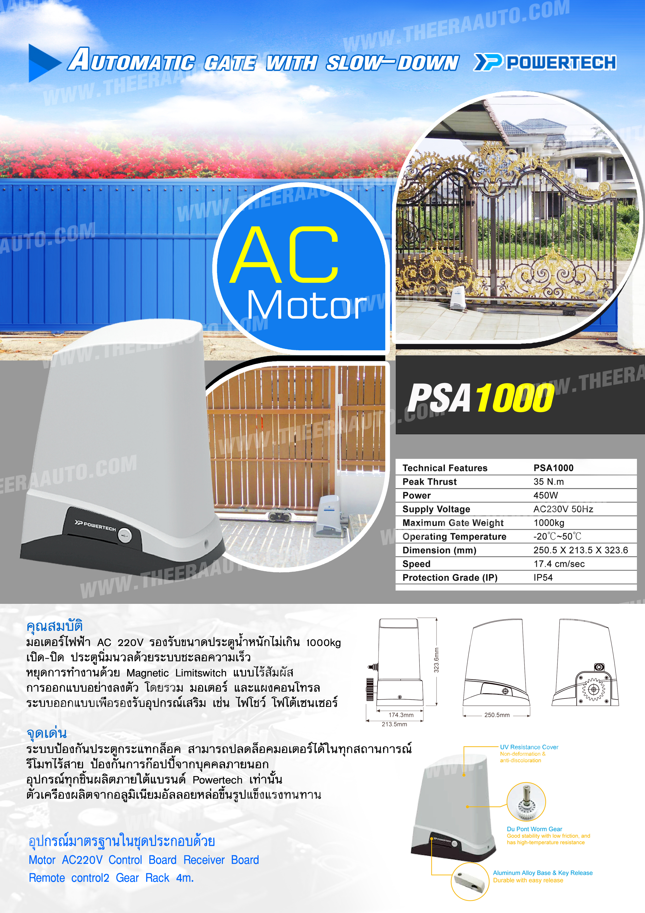 มอเตอร์ประตูรีโมทไฟฟ้า AC220V รองรับประตูขนาดน้ำหนักไม่เกิน 1200kg.