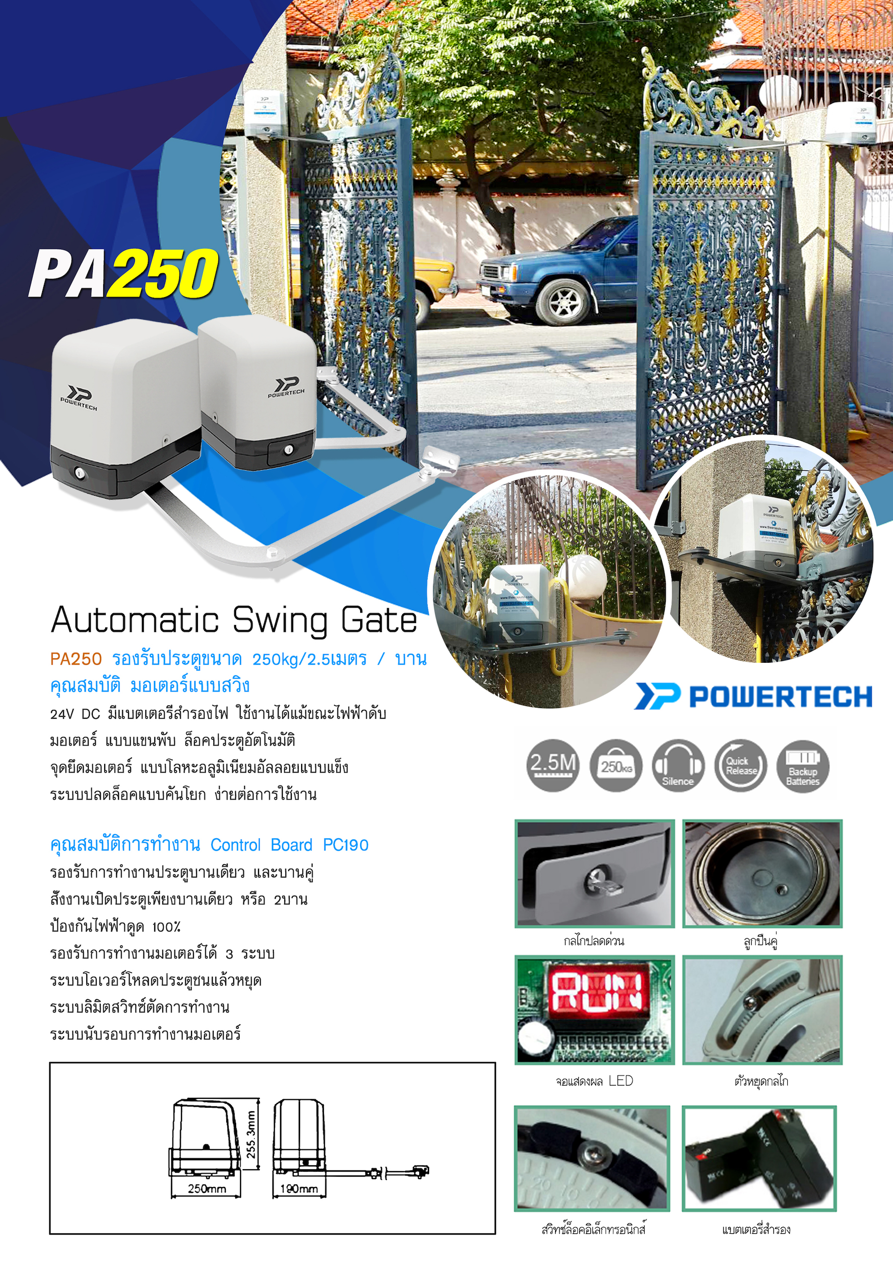 ประตูรีโมทบานสวิง ออกแบบอย่างลงตัวด้วยการรวมแบตเตอรี่ มอเตอร์ และแผงคอนโทรลไว้ในกล่องมอเตอร์