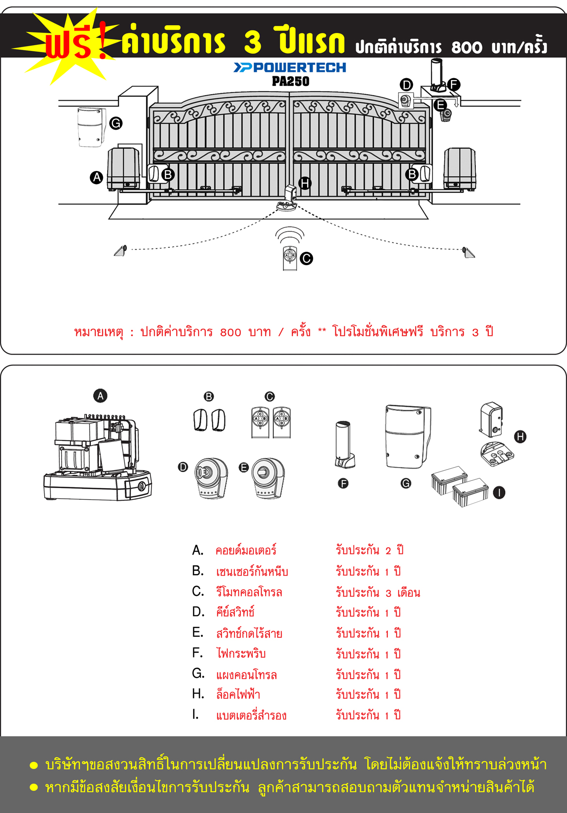 - ระบบป้องกันประตูกระแทกล็อค สามารถปลดล็อคมอเตอร์ได้ในทุกสถานการณ์
